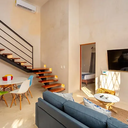 Beautiful Loft With 2 Rooms lägenhet erbjuder ett komplett kök samt rum med balkong, plattskärms-TV med satellitkanaler och luftkonditionering. Denna lägenhet ligger i distriktet La Veleta, ca 4 km från Tulums strand, och erbjuder soldäck, solterrass och pool.